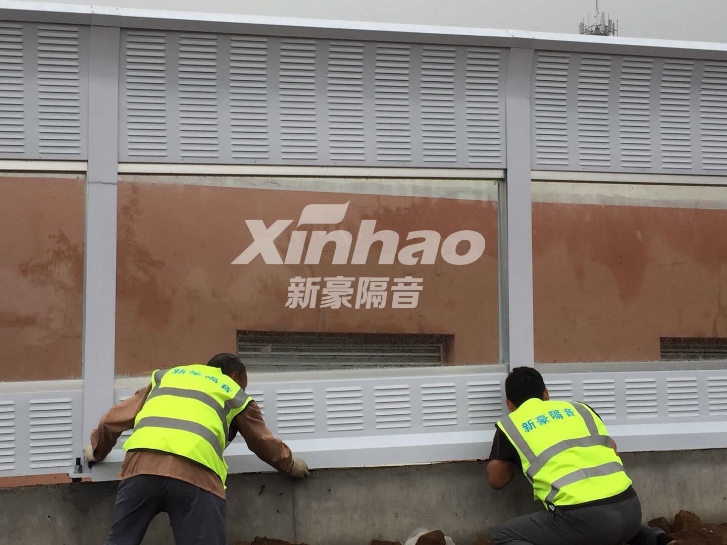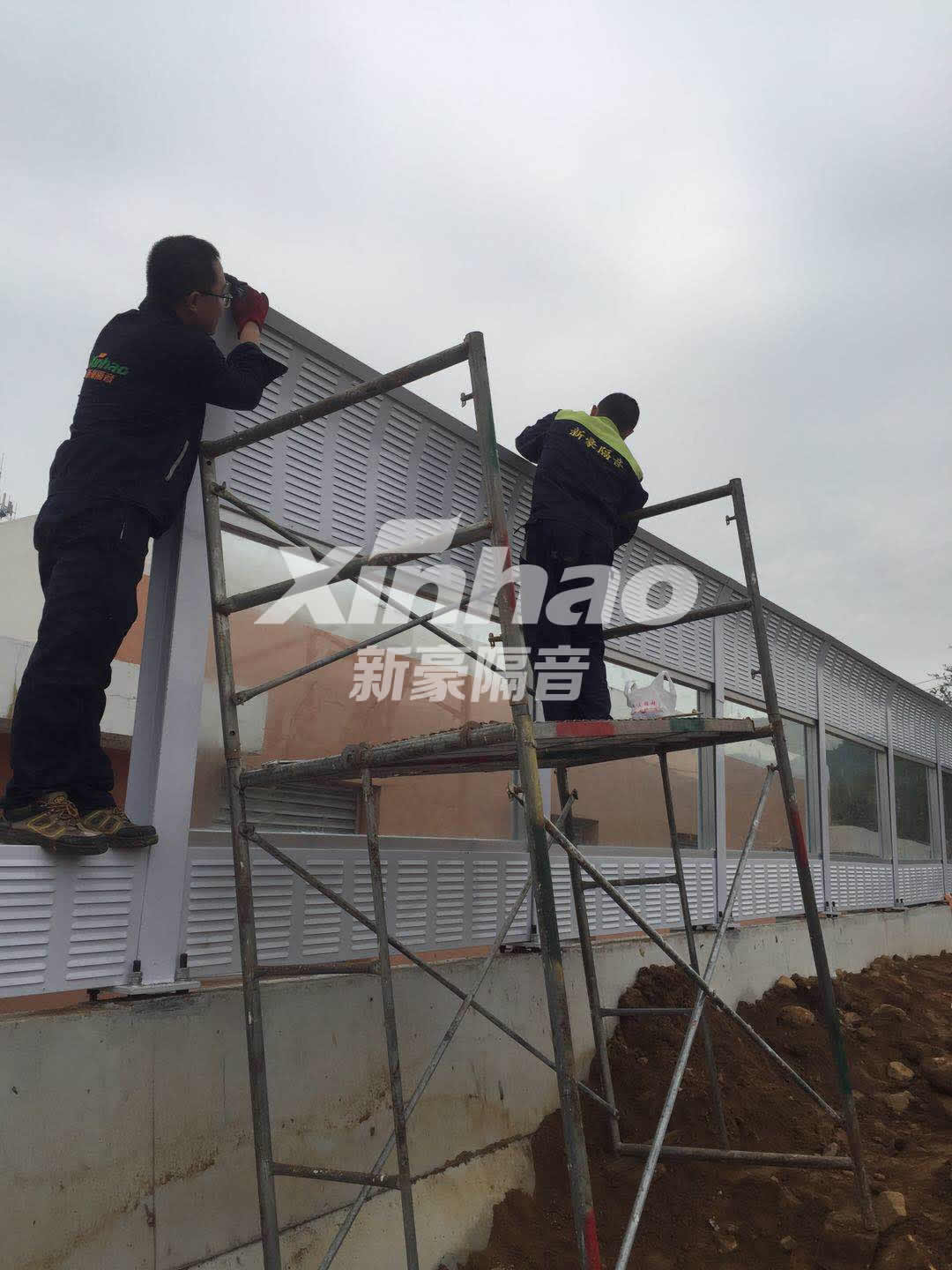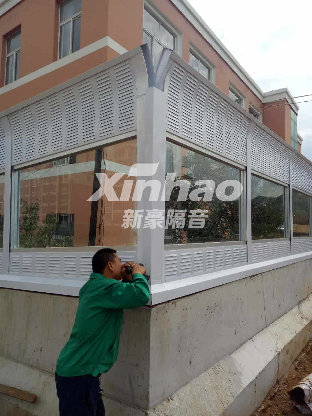 青島下莊小學(xué)是一所民辦小學(xué),施工地址位于黃島區(qū)辛安街道前港灣路南側(cè),學(xué)校緊鄰社會馬路(正在進(jìn)行修建的馬路),為了減小馬路噪音對教室聲學(xué)環(huán)境的影響,我公司針對其噪聲特點(diǎn)及現(xiàn)場的實際環(huán)境,設(shè)計百葉金屬屏與透明屏組合的隔聲屏障,屏障向聲源的一面彎曲,對噪音源進(jìn)行有效隔絕。隔聲屏障內(nèi)部添加吸聲材料,此設(shè)計既可以降低馬路噪聲對教室的影響,又可以滿足教室內(nèi)采光。目前項目已經(jīng)施工完畢,得到學(xué)校領(lǐng)導(dǎo)的一致好評及認(rèn)可。