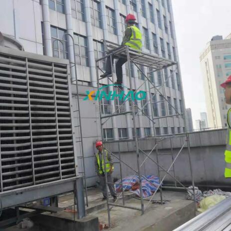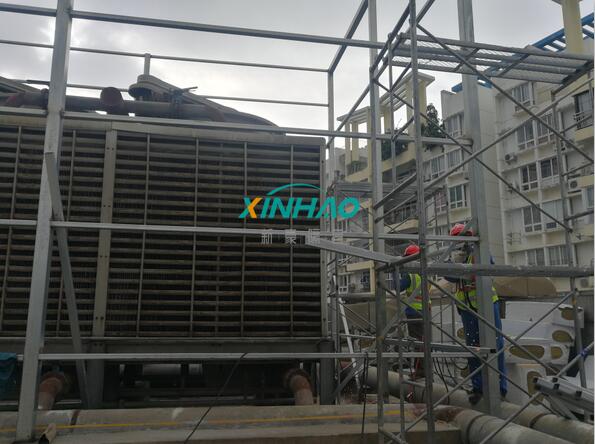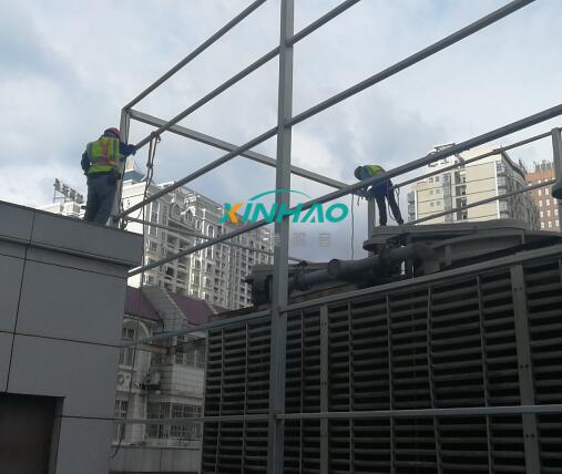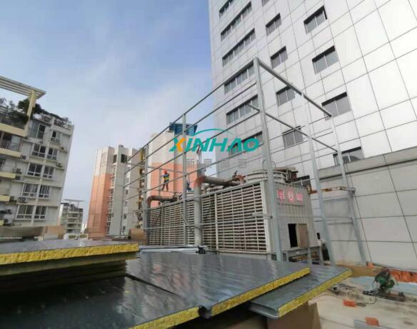 該工程位于南寧市青秀區(qū),冷卻塔位于平臺(tái)之上,冷卻塔在開(kāi)啟時(shí)的噪音影響了樓上辦公人員的正常工作,根據(jù)技術(shù)人員的現(xiàn)場(chǎng)勘察及分析,采用安裝隔聲罩的處理方式,目前已順利完工,并得到了客戶的一致好評(píng)。