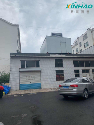 諸城公安局辦公樓中央空調(diào)距離居民最近處僅為8m左右,經(jīng)公司技術(shù)人員實(shí)地勘察并檢測,在設(shè)備開啟時(shí),現(xiàn)場噪聲值約為85dB(A),影響了附近居民的正常休息及生活,我公司給出的治理方案是安裝隔聲罩,目前已安裝完畢,治理效果得到甲方認(rèn)可。