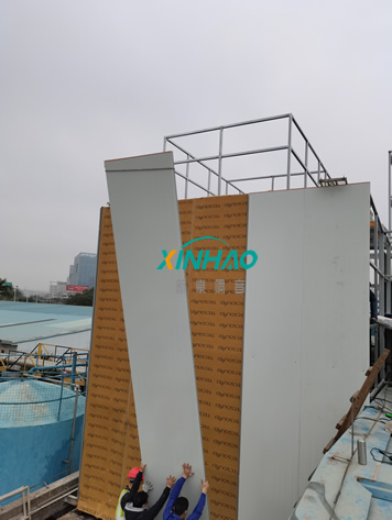 根據(jù)我公司技術(shù)人員現(xiàn)場勘查,針對冷卻塔及其它設(shè)備正常工作時產(chǎn)生的噪音,公司技術(shù)人員給出制作隔聲罩的處理方式,目前項目已施工完畢。