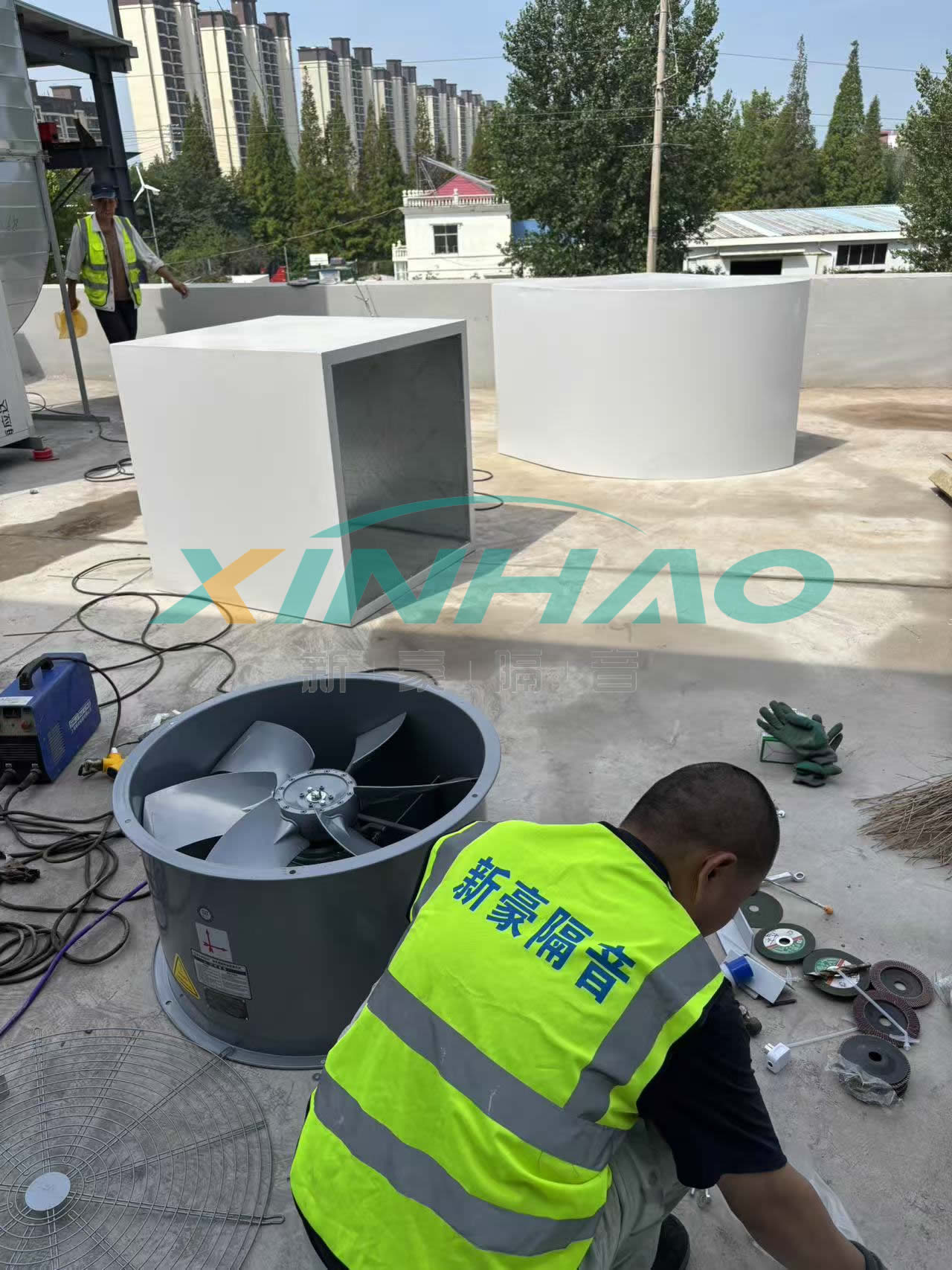 消音外壁構(gòu)造:由1mm的純金屬鋼板做外層板材,板材內(nèi)部添加新豪進(jìn)口隔音材料Tecsound系列產(chǎn)品(隔聲作用)。采用吸音棉粘貼在隔音板材上(吸音作用),內(nèi)側(cè)密封穿孔板。