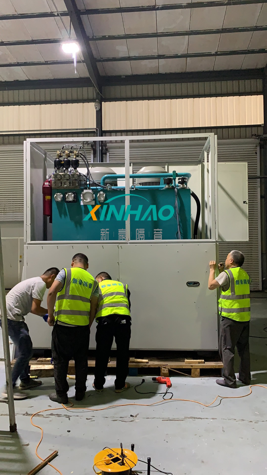 此項(xiàng)目是車間內(nèi)的沖床設(shè)備在正常工作時(shí)產(chǎn)生了較強(qiáng)噪聲,干擾了廠房?jī)?nèi)部的聲學(xué)環(huán)境及影響了車間內(nèi)工人的身心健康,經(jīng)過現(xiàn)場(chǎng)的勘察及分析,我公司采用了從切斷傳播途徑的方式來解決噪聲污染的問題,針對(duì)現(xiàn)場(chǎng)的實(shí)際情況綜合分析我們采用制作安裝隔聲罩的方法進(jìn)行噪音治理,現(xiàn)已施工完畢,治理效果得到了客戶的一致認(rèn)可。
