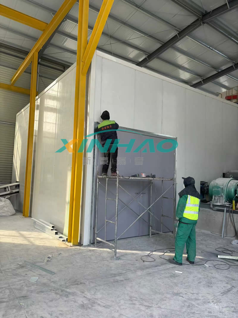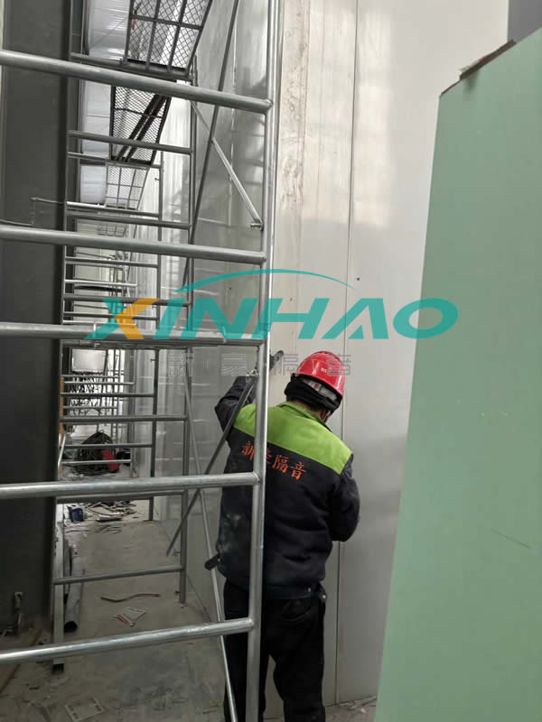 1、多種材料復合使用,單一材料無法滿足現(xiàn)場的降噪要求,隔聲吸聲相結合的處理方式,外部為主隔聲構件,內(nèi)部為吸聲模塊,解決室內(nèi)整條混響問題。